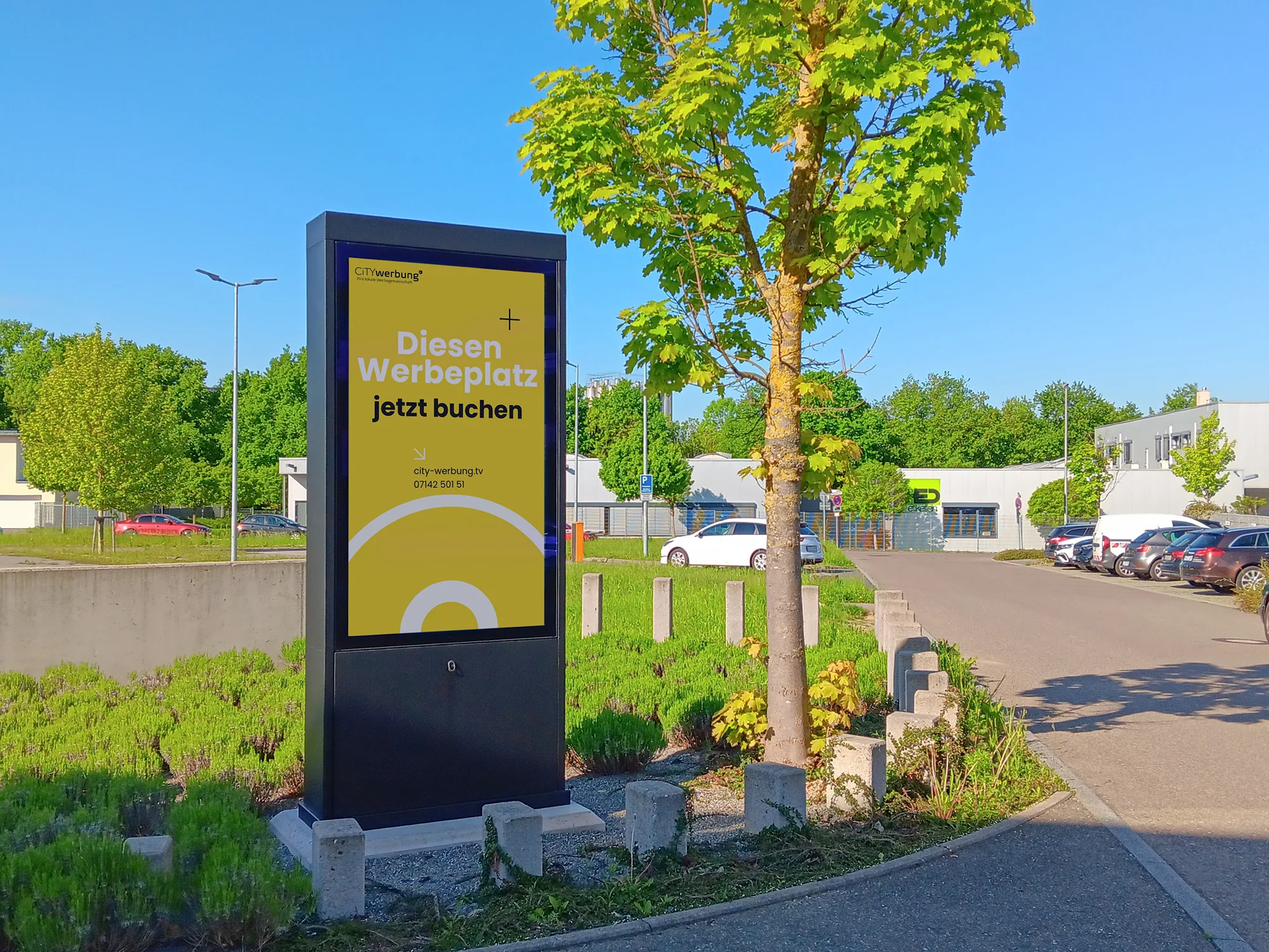 Regional sichtbar: Ihre Anzeige läuft mehrfach täglich auf digitalen Bildschirmen in Ihrer Heimatstadt.